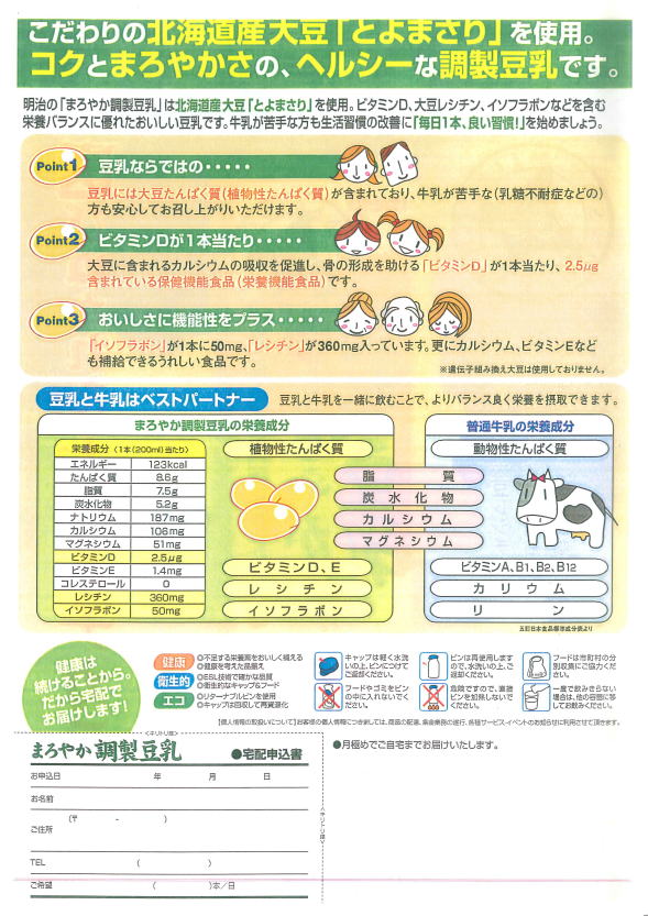 戸井乳業株式会社は、(株)明治の特約店として明治の宅配専用商品をお届けしています。
